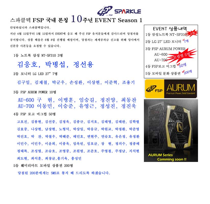 ½ºÆÄŬŨ, FSP Çѱ¹·ÐĪ 10Áֳ⠱â³ä EVENT ´ç÷ÀÚ ¹ßÇ¥